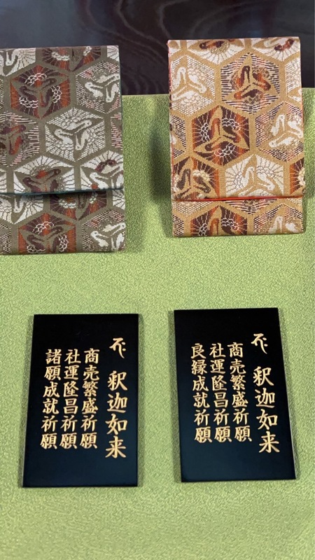 お守り木札に、願い事、名前、生年月日を彫り上げ、指定のお寺さんで、ご祈祷を受けます。